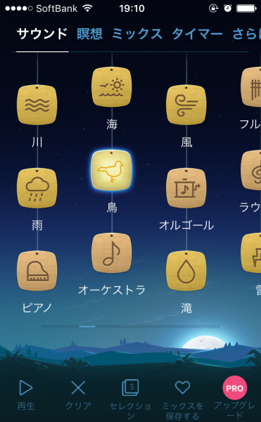 自然音やリラックスできそうな音を好きにミックスして再生できるアプリ。