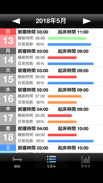 これが自分の生活リズムの把握に役立つな~と思って記録できるアプリを探していて見つけたものです。
