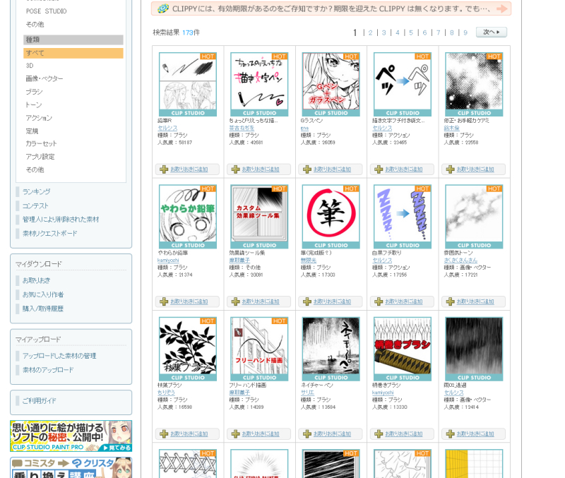 ↑「CLIP」で配布されているマンガ向け素材の特集ページ