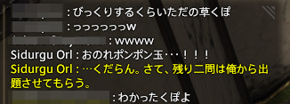 ※合間合間におなじみのポンポン草ネタ(Lv58クエ)でいじられるシドゥルグ