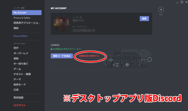 PC版からDiscordにアクセスし、二段階認証の「復旧コード」を用いて上と同じ手順で二段階認証を解除しましょう。