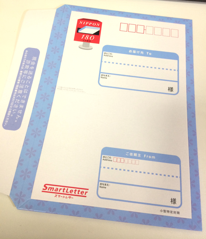 スマートレター用の封筒は以下のような感じ。ちょっとファンシー系?