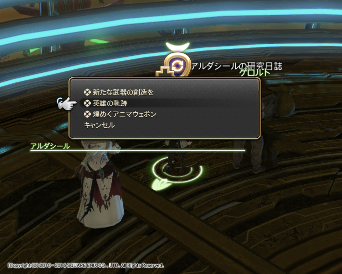 次の段階のクエストを受注するためには「アニマウェポンを再創造する」を押す必要があります。