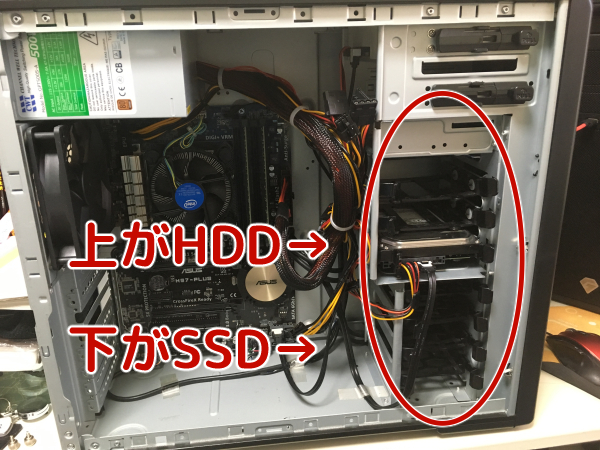 あらかじめ増設が可能なように、SSD4つ、HDD4つ分設けられています。