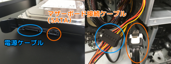 ケーブルの長さや方向によってはOSの入っているドライブの電源ケーブルの位置を差し替える場合があります。