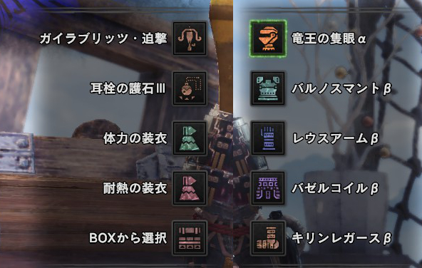 足:キリンレガースβ(体力珠【1】、爆師珠【1】)
