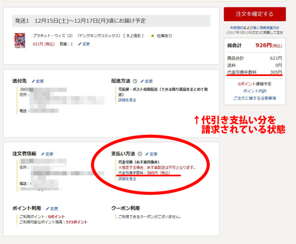 クレジットカード払いにしないと代引き手数料やコンビニ支払い手数料を取られる
