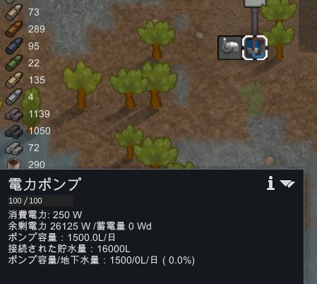 - 地下水の多そうなエリアにポンプ系アイテムを設置する(電力ポンプなど)