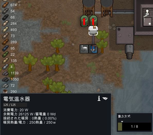 - 温水も温水器によって供給量上限が決まっている(動力を上げると増やせるが1つにつき最大で8)