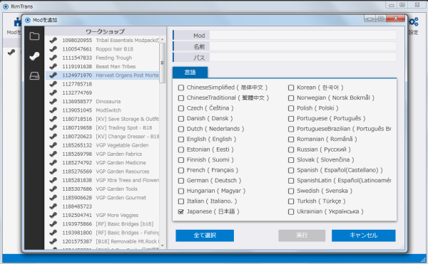 ・RimTransで元MODに「Languages」フォルダと日本語ファイルを作り、それを翻訳する