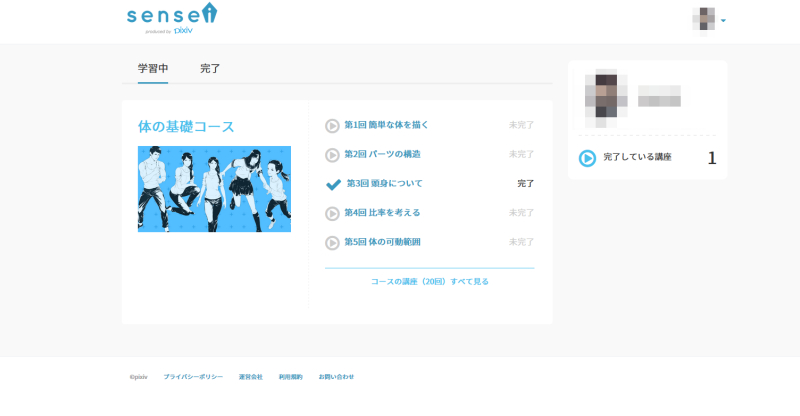 今のところ、Pixivアカウントと連携するメリットは、どの講座を完了したかチェックしておける程度のようです。