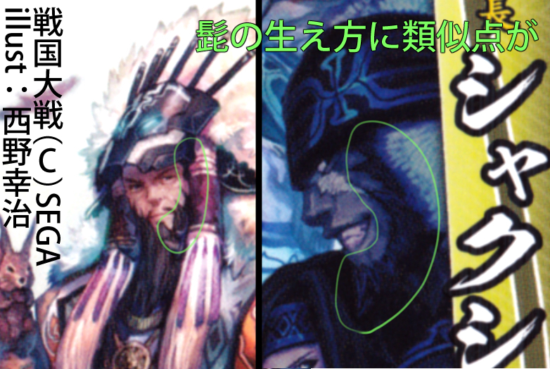 今日、らくがいていてふと気づいたのは、戦国大戦のシャクシャインが着ている萌え袖の正体は、蝦夷錦じゃなかろーか。シルエットはそのままで模様を変えている感じ。夷酋列像でも似た袖の服を着た人物が何人かいますだに。