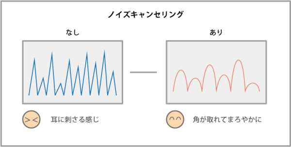 ノイズキャンセリングをする前は人の声がビリビリと耳に刺さる感じで聞こえていたのが、