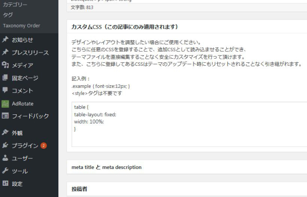 (記事編集ページ下の「カスタムCSS」はテーマのアップデートがあってもリセットされることなく引き継がれるため)